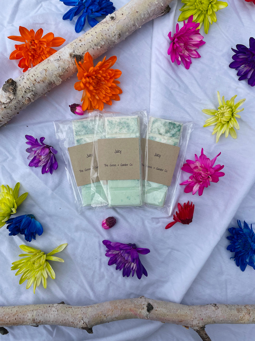 what makes our wax melts unique?* hand made and poured in small batches to ensure the best quality* made with 100% natural soy wax that is free of chemicals, preservatives and any additives* fragranced with high quality oils that are free of parabens & phthalates* lightly fragranced to avoid nasty headaches from overpowering scents* cute as heck!